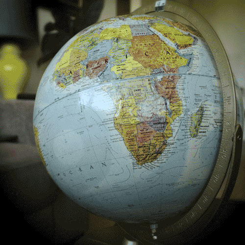 Since Peter was a little zygote, he has wanted a vintage globe. We have found a few on our thrifting travels, but they’ve always been pretty pricey.  Until last weekend, when we hit the jackpot! It was his birthday, so I think the force was with him. We found this fabulous globe in the Salvation Army thrift store for 10 bucks. I did some globe dating, and it turns out it was made between 1976 and 1979. Not exactly an antiquity, but pretty good for 10 bucks!