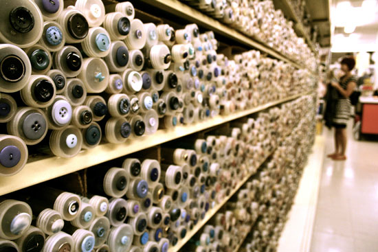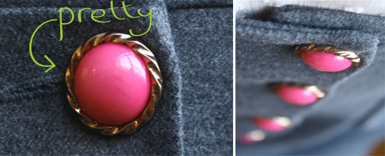 This weekend, I found a shop that has the most buttons I have ever seen in my life. All the pretty colours in the world, in rows. I had a dress that was looking a bit sad with a missing button.  Since I had (of course) lost the spare, I though I would revamp it by changing all the buttons.