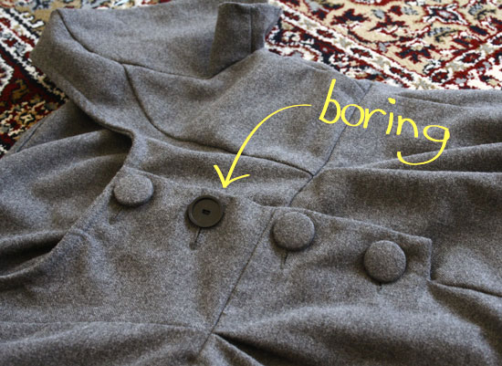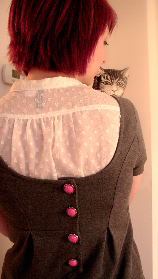 I think it looks rather swell! ‘Kitten’ approves too. I have an ambition to change the buttons on everything now.  Next stop — boring cardigans.
